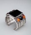 Marks and Labels/Stampsa pictograph of two birds; SAN JUAN / PUEBLO and STERLINGProvenanceBarbara LivensteinExhibition HistoryInnovators in Southwestern Jewelry, The Newark Museum of Art, Newark, New Jersey (May 10, 2023 - ongoing)Our online collection is a work in progress. It reflects only a portion of the entire collection and the ongoing work conducted over the course of our 115-year history. The objects presented may contain offensive racial, gender, sexual, religious, and other language and imagery, and their records may contain offensive and discriminatory language, or reflect outdated ideas and analyses. We are actively working to address these issues, and we welcome your feedback as we strive to improve our data and our practices. Please email us at registrar@newarkmuseumart.org if you have comments or information to share.